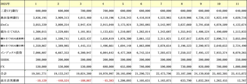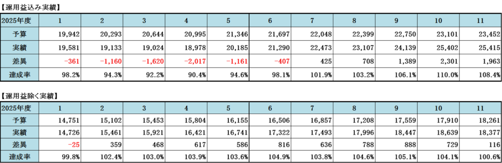 2025年11月度の投資金額詳細について